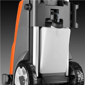 Dank des integrierten Waschmitteltanks benötigen Sie nur ein Produkt zum Auftragen und Waschen von Reinigungsmitteln. Der Tank ist leicht zu entfernen und wieder aufzufüllen, und Sie können auch einen separaten Tank verwenden, indem Sie den Schlauch herausziehen und ihn über den Standard-Schraubverschluss anschließen. Auf der Vorderseite können Sie bequem die Dosierung einstellen.